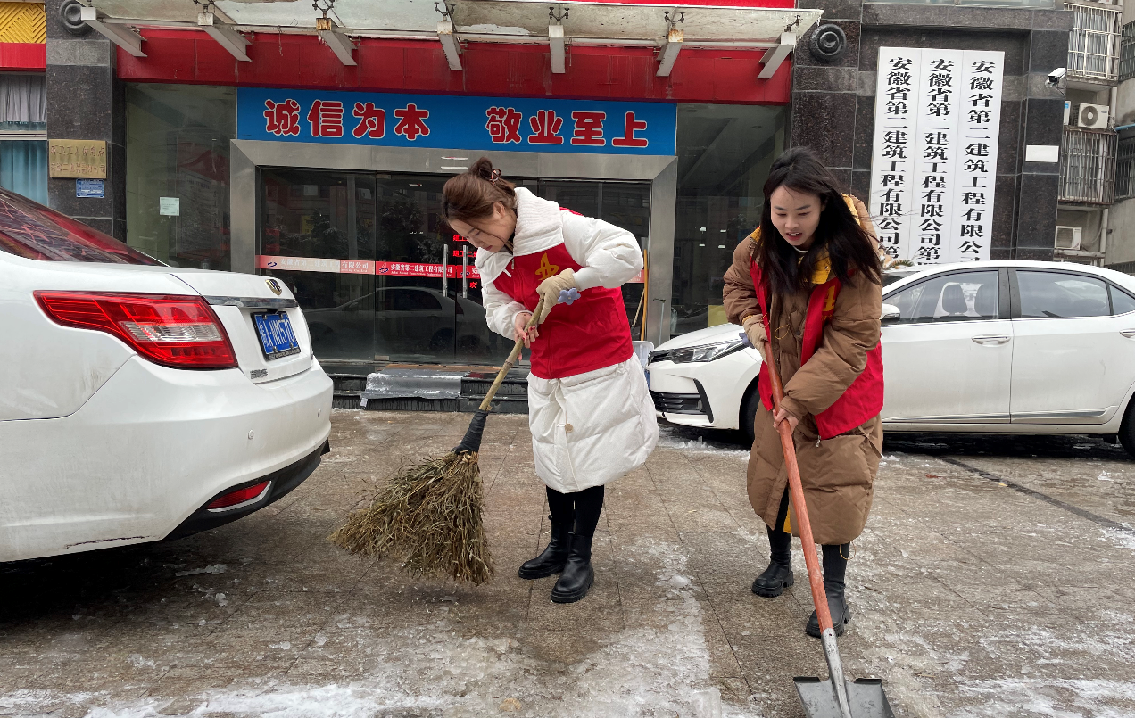 合肥迎來低溫雨雪冰凍天氣,城區(qū)多條道路“刷白”,給群眾出行帶來不便。2月5日,建工二建第四公司青年志愿者,以雪為令、迅速行動,開展掃雪除冰“大作戰(zhàn)”,用一抹“志愿紅”,溫暖整個寒冬。