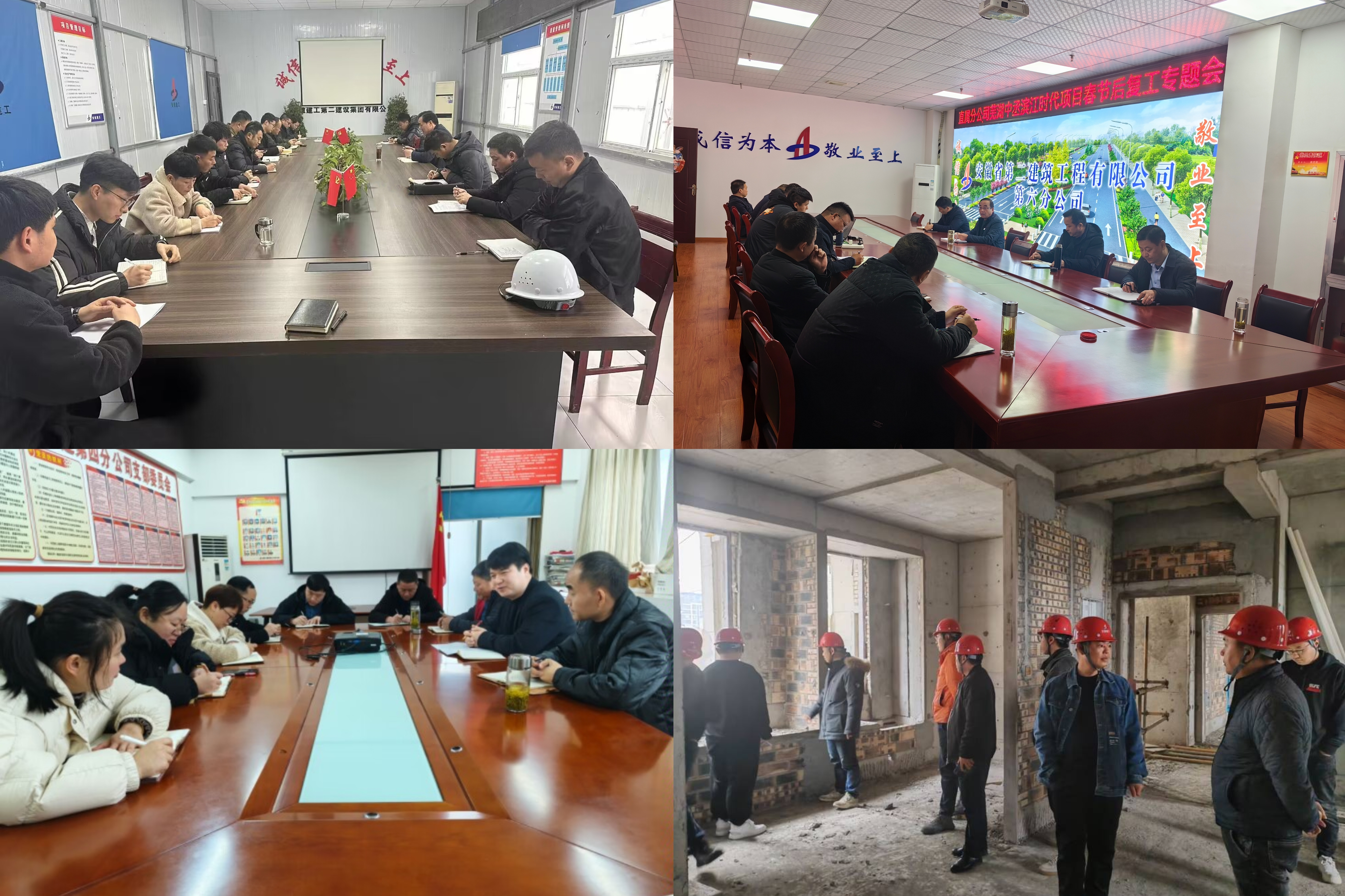 新春伊始,萬(wàn)物復(fù)蘇。隨著春節(jié)假期的結(jié)束,建工二建所屬各單位迅速調(diào)整狀態(tài),對(duì)項(xiàng)目開(kāi)展復(fù)工復(fù)產(chǎn)大檢查,召開(kāi)年后復(fù)工復(fù)產(chǎn)工作會(huì)議,總結(jié)經(jīng)驗(yàn),舉一反三,凝聚合力,系統(tǒng)謀劃2024年度重點(diǎn)工作任務(wù),統(tǒng)籌抓好節(jié)后快速?gòu)?fù)工復(fù)產(chǎn)和安全生產(chǎn),助力公司加快生產(chǎn)經(jīng)營(yíng)步伐,為實(shí)現(xiàn)一季度“開(kāi)門紅”奠定基礎(chǔ),為實(shí)現(xiàn)全年目標(biāo)任務(wù)開(kāi)好頭、起好步。