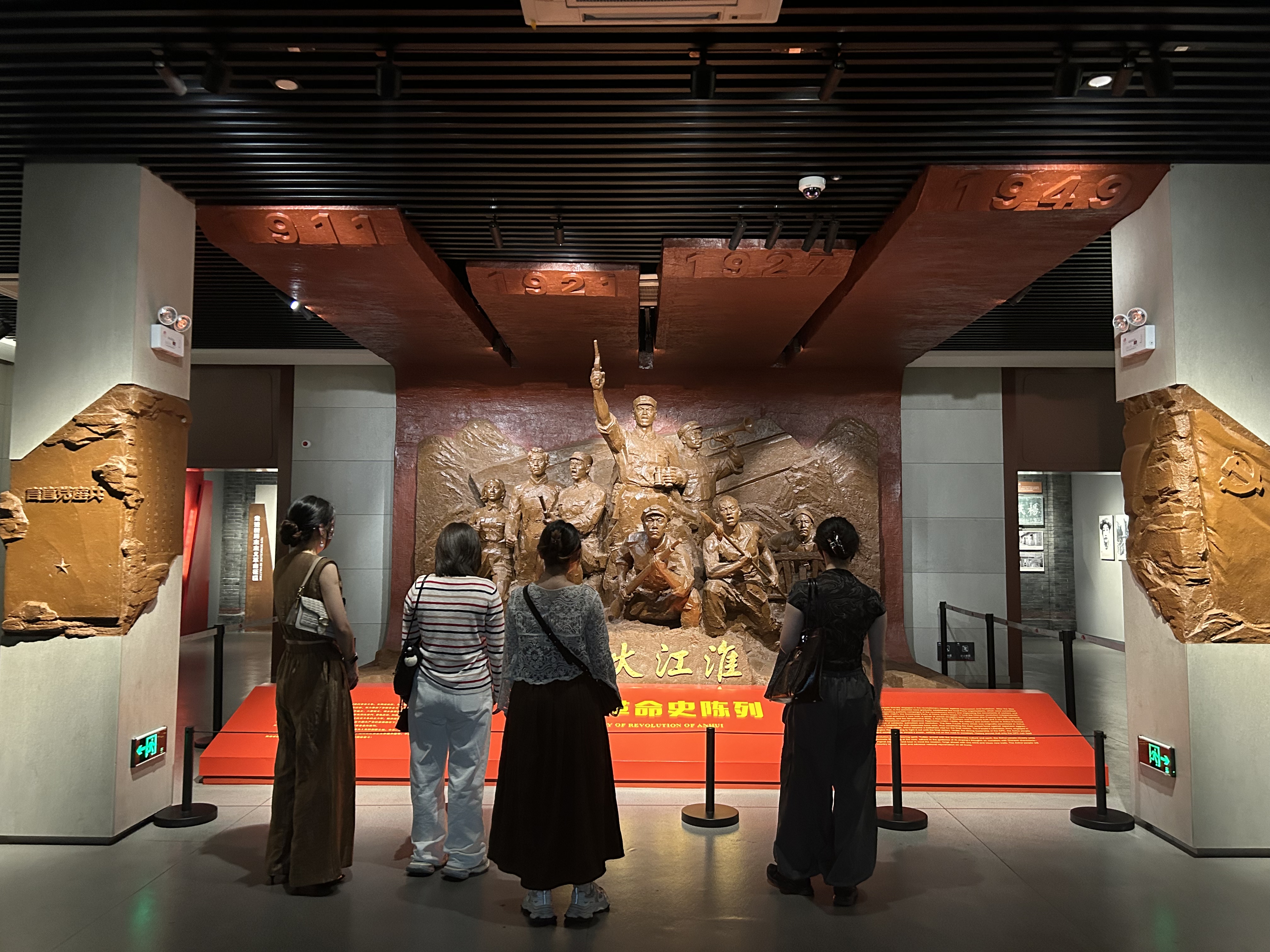 團員青年來到安徽博物院,首先參觀“觀烽火江淮——安徽革命史陳列館”“安徽革命史陳列”分為“革命賡續(xù) 安徽建黨”“紅色沃土 紅軍搖籃”“華中砥柱 鐵軍戰(zhàn)歌”“江淮鏖兵 革命勝利”四個部分。展館以實物、歷史照片、多媒體等方式鮮活再現(xiàn)了自“五四運動”后安徽兒女的革命歷史。隨后,團員青年們依次參觀了而今邁步從頭越——紀念毛澤東視察安徽省博物館六十周年、龍行中華——甲辰龍年生肖文物大聯(lián)展等展覽。