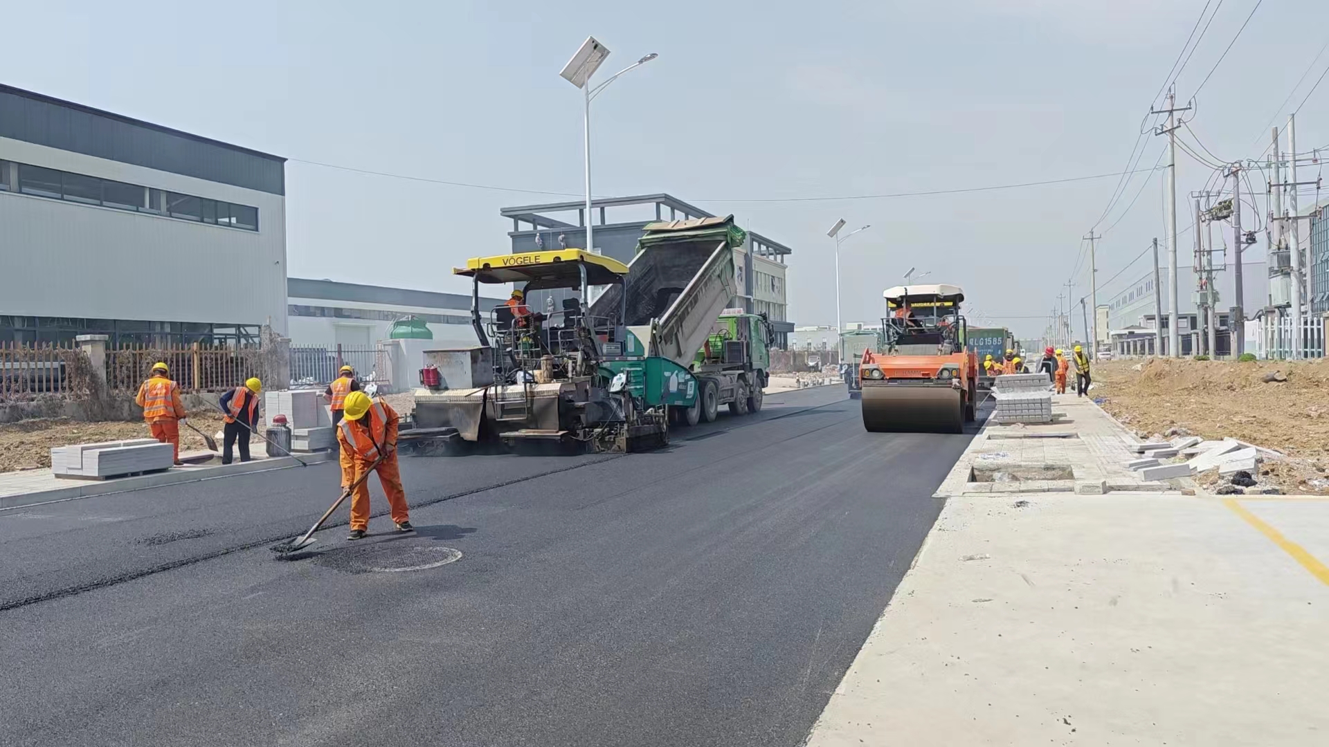 目前,錦江路、環(huán)溝路、閔北東路、閔南東路竣工驗收完成;閔子大道中層瀝青攤鋪完成、路燈安裝完成,綠化施工完成95%;桃山路路基6%灰土施工完成、路面底基層12%灰土施工完成,k1+160-k2+130段雨水收集井及支管施工完成,水穩(wěn)攤鋪完成,k0+000-k1+160段第一層水穩(wěn)攤鋪完成,雨水收集管施工完成,人行道施工完成40%;淮海西路路面底基層12%灰土施工完成,雨水收集井及支管施工完成,水穩(wěn)攤鋪完成;人行道施工完成60%。施工現場呈現一派熱火朝天的勞動景象。