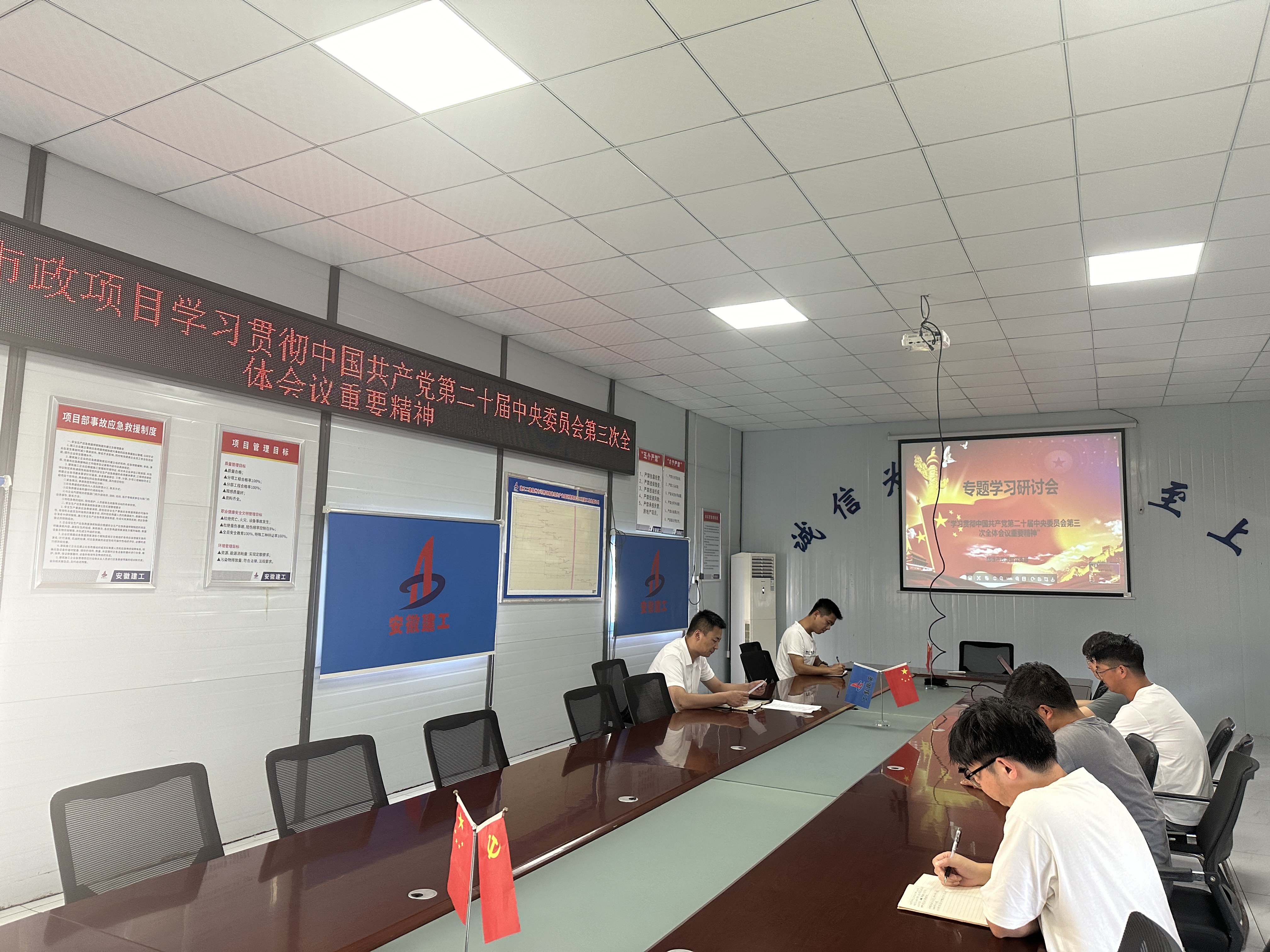 學(xué)習(xí)宣傳貫徹黨的二十屆三中全會精神,是當(dāng)前和今后一個時期的重大政治任務(wù)。宿徐現(xiàn)代產(chǎn)業(yè)園市政項目黨支部認(rèn)真學(xué)習(xí)、廣泛討論、深入交流,學(xué)習(xí)《中國共產(chǎn)黨第二十屆中央委員會第三次全體會議公報》,觀看文件解讀資料,并通過主題黨日、主題團(tuán)日、座談會等共同研讀《黨的二十屆三中全會<決定>學(xué)習(xí)輔導(dǎo)百問》,并結(jié)合自身工作情況分享學(xué)習(xí)心得和體會,持續(xù)掀起學(xué)習(xí)貫徹黨的二十屆三中全會精神熱潮,推動黨的二十屆三中全會精神入腦入心、落地生根。