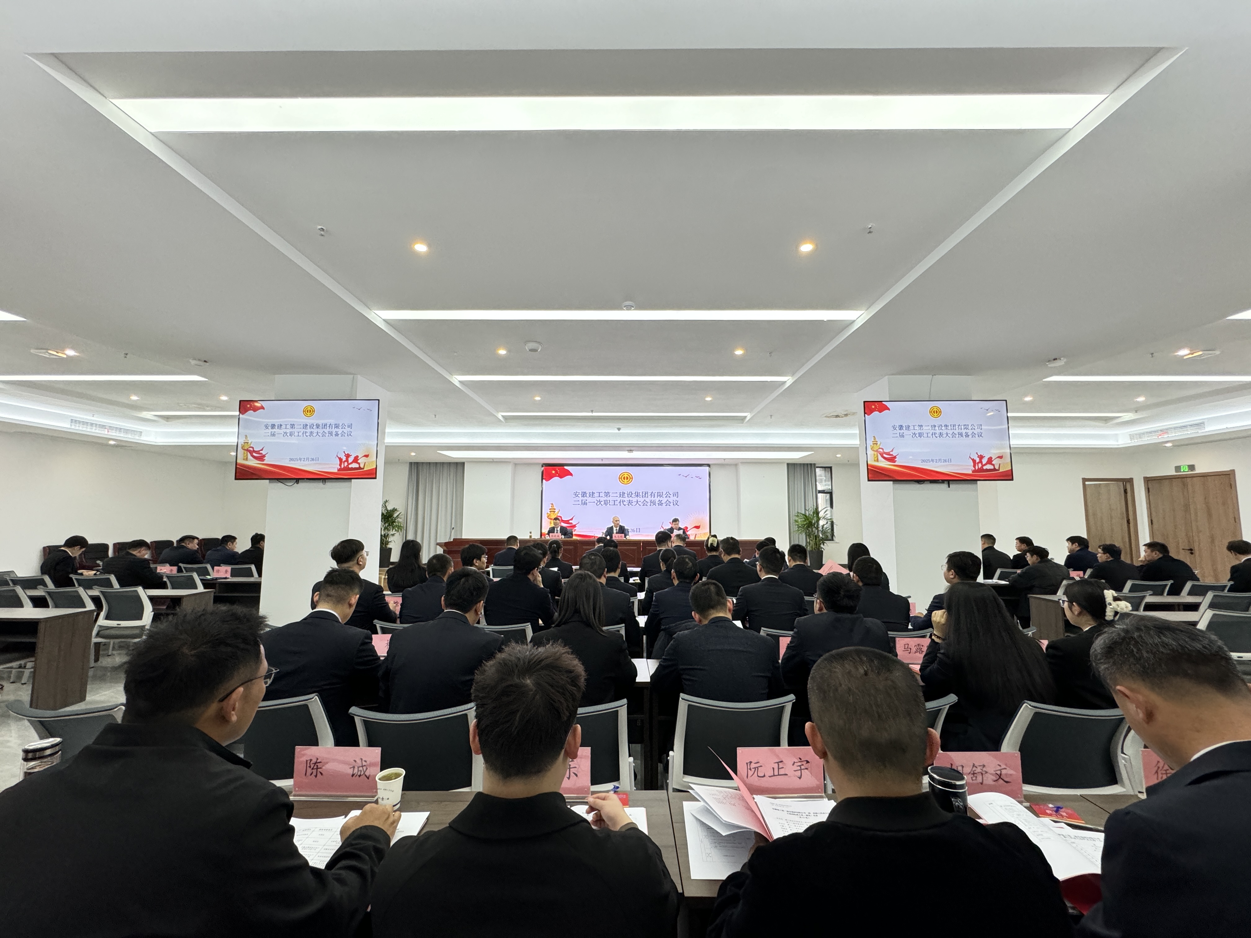 2月26日下午,公司二屆一次職代會預(yù)備會議在宿州召開。本次預(yù)備會議應(yīng)到代表61人,實到代表58人,符合法定人數(shù)。建工股份黨委委員、副總經(jīng)理,建工二建黨委書記、董事長朱忠明參加會議,公司黨委委員、副總經(jīng)理周曉彧主持會議。