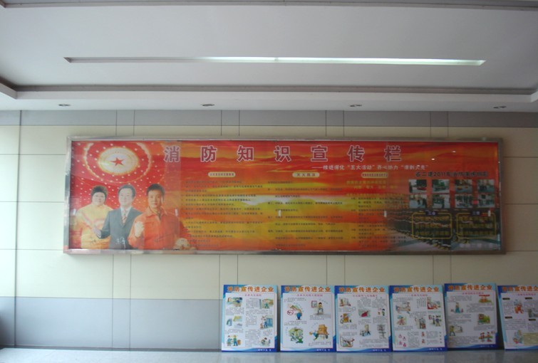 圖為公司辦公樓宣傳欄中的消防知識內(nèi)容