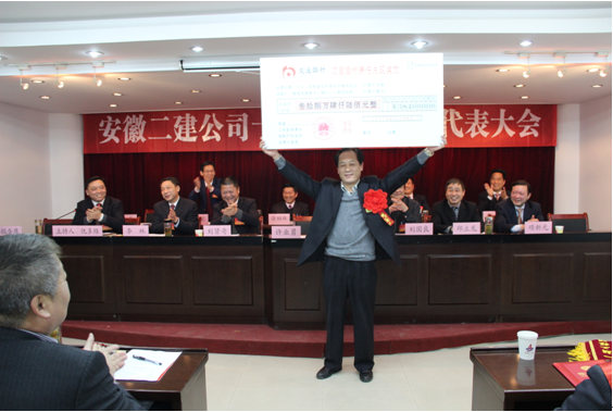 最后,黨委書記劉賢奇同志作了《轉(zhuǎn)變觀念 統(tǒng)一思想 增強(qiáng)信心 開拓進(jìn)取 為開創(chuàng)一流安徽二建新局面而努力奮斗》的總結(jié)講話。劉書記首先對2016年公司各項工作所取得的成績給予了充分肯定,對受表彰的先進(jìn)集體和個人表示了熱烈的祝賀,向辛勤工作在各個崗位上的全體二建員工致以誠摯的問候!劉書記強(qiáng)調(diào),二建的掘起依賴全體二建人的共同努力,為此,提出幾點意見:一是以學(xué)習(xí)黨的十八屆六中全會為主線,進(jìn)一步加強(qiáng)理論武裝。堅持以領(lǐng)導(dǎo)干部為重點抓好黨委中心組學(xué)習(xí),同時深入抓好全體黨員的經(jīng)常性學(xué)習(xí)教育活動;二是以弘揚(yáng)求真務(wù)實之風(fēng)為依托,進(jìn)一步改進(jìn)工作作風(fēng)。工作要力求精益求精,做出品牌、做出特色,敢于批評和自我批評,虛心接受各方面意見,敢于沖破束縛我們手腳的各種框框和體制障礙,實現(xiàn)政治、經(jīng)濟(jì)、精神文明的協(xié)調(diào)發(fā)展。三是以建設(shè)“四好”領(lǐng)導(dǎo)班子為重點,進(jìn)一步加強(qiáng)領(lǐng)導(dǎo)班子和黨員隊伍建設(shè)。堅持把企業(yè)經(jīng)營業(yè)績考核結(jié)果作為評價開展“四好”班子建設(shè)的重要依據(jù),堅持定量考核與定性評價相結(jié)合,努力達(dá)到上級黨委、領(lǐng)導(dǎo)班子自身和職工群眾“三滿意”的效果。四是以增強(qiáng)企業(yè)凝聚力、向心力為目標(biāo),進(jìn)一步做好職工思想政治工作和企業(yè)文化建設(shè)。五是以弘揚(yáng)企業(yè)廉潔文化的抓手,進(jìn)一步穩(wěn)固企業(yè)反腐倡廉體系。要求公司各級管理人員要貫徹落實好“一崗雙責(zé)”,修訂完善黨內(nèi)各項考核制度,形成用制度管人、用制度管事、用制度管權(quán)的工作格局。六是以創(chuàng)建和諧企業(yè)為載體,進(jìn)一步做好群團(tuán)工作。按照黨建帶群團(tuán)組織建設(shè)的要求,按照總攬全局、協(xié)調(diào)各方的原則,切實發(fā)揮好公司黨委領(lǐng)導(dǎo)核心和政治核心作用。讓全體二建人在集團(tuán)和公司兩級黨政班子的堅強(qiáng)領(lǐng)導(dǎo)下,上下同心,精誠團(tuán)結(jié),以高度的時代使命感和政治責(zé)任感,拼博進(jìn)取,為開創(chuàng)安徽二建改革發(fā)展新局面、實現(xiàn)安徽二建宏偉目標(biāo)而不懈奮斗!