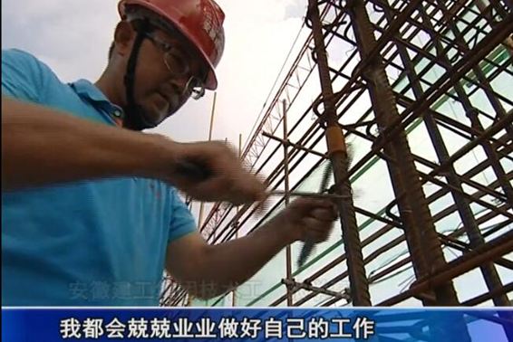在商務樓十四層梁柱鋼筋綁扎作業(yè)施工現(xiàn)場,項目部鋼筋班組工人張學亮接受了電視臺的采訪,他向記者重點介紹了項目工程目前的施工進展情況、工作進度節(jié)點安排、夏季防暑降溫工作安排和平時在工作中遇到的施工工藝上的重難點問題所做出的積極努力。