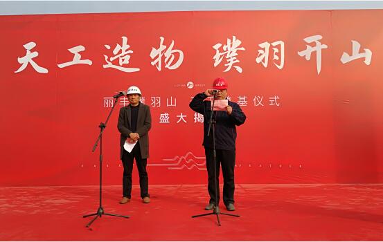 璞羽山項(xiàng)目現(xiàn)場布置一新、彩旗飄揚(yáng),代表方隊(duì)精神抖擻、意氣風(fēng)發(fā),各類重型施工機(jī)械整齊劃一、排列有序。9:08分,一場盛世鼓舞表演拉開了帷幕。在主持人熱情洋溢的開場后,麗豐集團(tuán)常務(wù)副總闞家景先生上臺致辭,詳細(xì)介紹了麗豐集團(tuán)20載發(fā)展歷程及璞羽山項(xiàng)目的工程進(jìn)度與營造理念。
