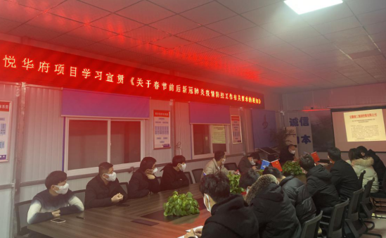 近日,銅陵吾悅?cè)A府項(xiàng)目組織學(xué)習(xí)【關(guān)于切實(shí)做好2021年“兩節(jié)”期間新冠肺炎疫情防控工作的通知】和【關(guān)于春節(jié)前后新冠肺炎疫情防控工作有關(guān)要求的通知】,根據(jù)文件精神安排部署春節(jié)前后新冠肺炎疫情防控工作,做到早安排早準(zhǔn)備,確保本項(xiàng)目在春節(jié)前后無疫情發(fā)生。