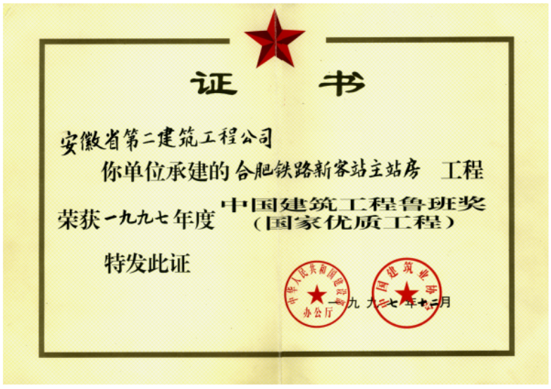 魯班獎(jiǎng)(合肥鐵路新客站主站房)