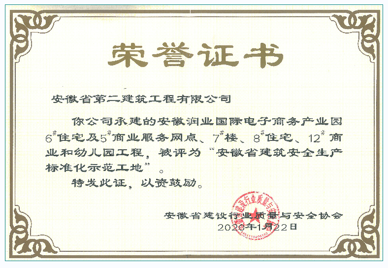 省級安全文明示范工地(安徽潤葉國際電子商務(wù)產(chǎn)業(yè)園)