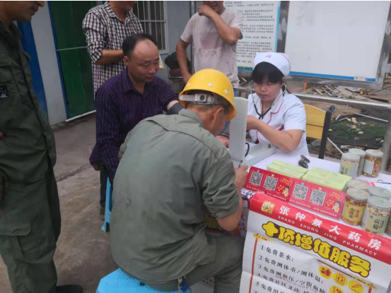 隨著人們的生活水平的不斷提高,飲食結(jié)構(gòu)發(fā)生變化,高血壓等心腦血管疾病的患病率逐年上升,對職工健康構(gòu)成了較大威脅,同時(shí)也不利于企業(yè)安全穩(wěn)定健康發(fā)展。據(jù)了解,河南寶豐項(xiàng)目工人年齡普遍在四、五十歲左右,正是心腦血管疾病和高血壓高發(fā)年齡段。因此,本次項(xiàng)目黨支部攜手張仲景大藥房開展義診,為一線工人義務(wù)測量血壓并及時(shí)給予健康指導(dǎo)和咨詢,讓職工通過了解自己的血壓數(shù)值,對疾病早預(yù)防、早治療。