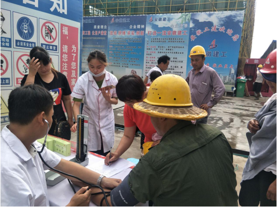 近日,河南省出現(xiàn)持續(xù)高溫天氣,為此河南寶豐西商物流園項(xiàng)目黨支部攜手張仲景大藥房為工人測量血壓,關(guān)愛農(nóng)民工,向他們道一聲“辛苦了”。