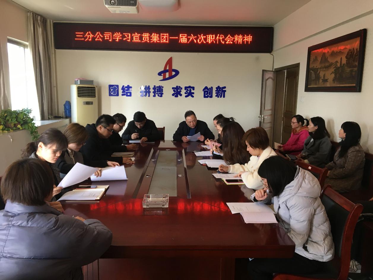 3月12日,三分公司組織機(jī)關(guān)全體員工在會(huì)議室學(xué)習(xí)宣貫集團(tuán)一屆六次職代會(huì)精神,支部書記陳習(xí)武主持會(huì)議。