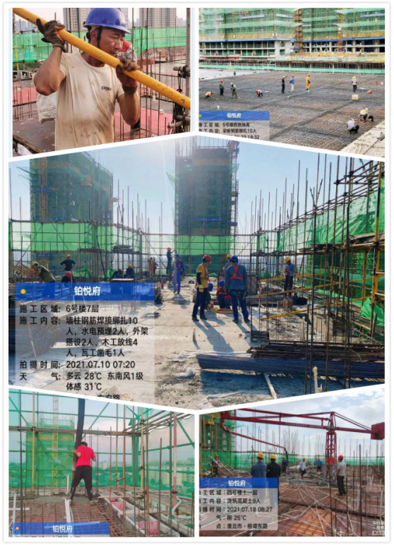 自6月21日公司2021年“學黨史、保安康、搶工期、爭一流”勞動競賽活動啟動后,一分公司淮北鉑悅府項目立即召開動員會,根據(jù)勞動競賽目標,梳理各班組施工任務,下達施工任務書,每天召開安全生產(chǎn)例會,檢查當日任務完成情況,總結(jié)經(jīng)驗,及時分析存在的問題,并制定相應糾偏措施,確保完成施工任務。項目全體員工堅定信心、苦干實干、爭分奪秒、大干快干。截止目前,各樓棟形象進度均按勞動競賽計劃完成,7月計劃產(chǎn)值1400萬,實際已完成產(chǎn)值1523萬元,階段性產(chǎn)值目標超額完成。